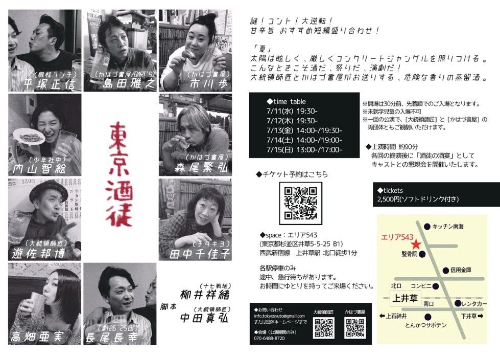かはづ書屋メンバーに加え、絶対的な信頼を置いているこのお二人、脚本に十七戦地の柳井祥緒さん、客演にチタキヨの田中千佳子さんを招いての某大文豪と某探偵作家のお話です。